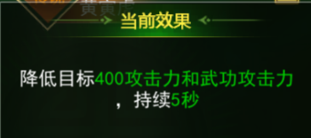 2、「战意威慑」:黄寅虎独有天赋,可降低目标攻击力和武功攻击力。升级后可降低大量的怪物伤害,越级挑战更高难度的怪物。